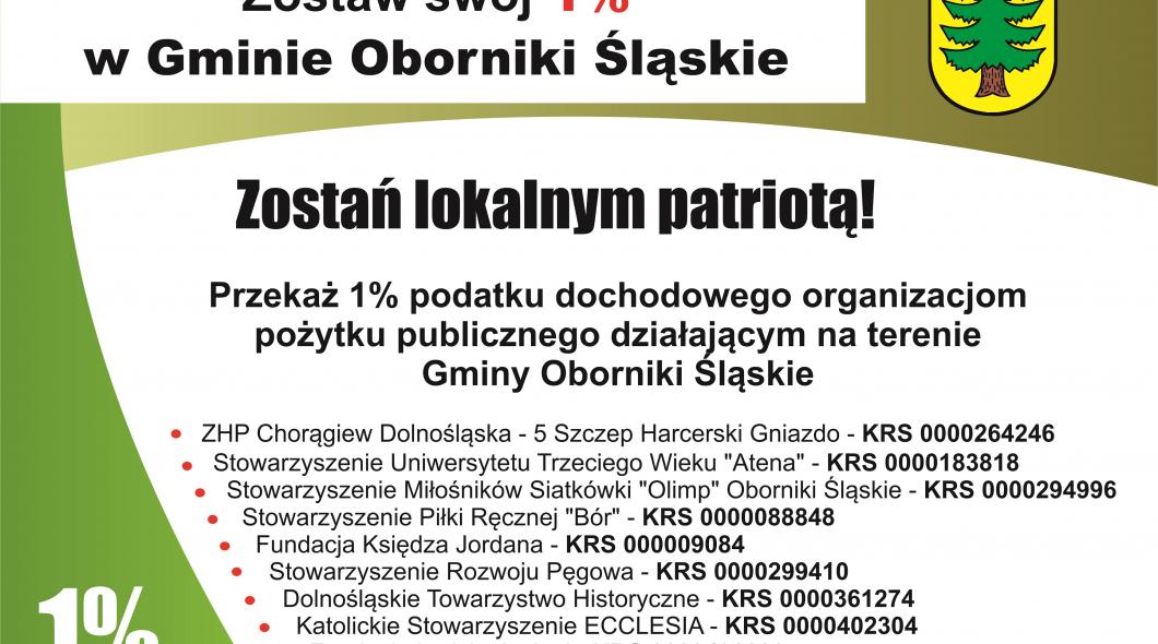 Zostań lokalnym patriotą. Przekaż 1% podatku dochodowego organizacjom pożytku publicznego działającym na terenie Gminy Oborniki Śląskie!