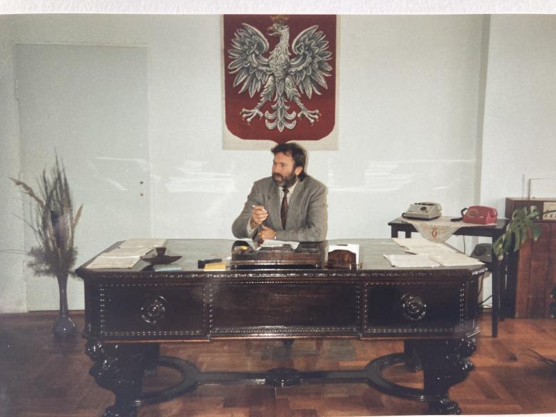 fot.3 Ryszard Stadtmuller, pierwszy Burmistrz Miasta i Gminy Oborniki Śląskie, w gabinecie