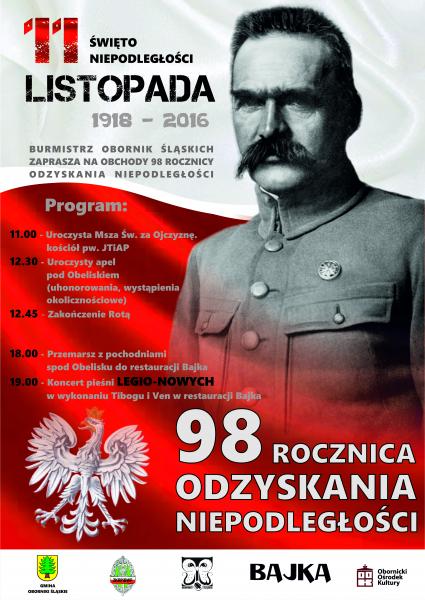 11 listopada zbliża się wielkimi krokami... W tym roku oprócz Mszy Św. za Ojczyznę oraz uroczystości pod Obeliskiem przygotowaliśmy dla Państwa koncert pieśni LEGIO - NOWYCH w restauracji Bajka, na który już teraz serdecznie zapraszamy!