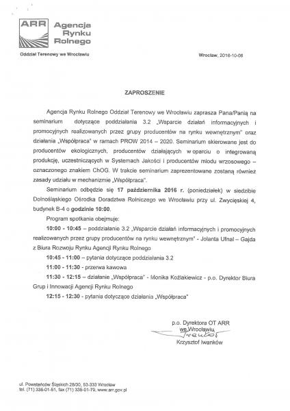 Agencja Rynku Rolnego we Wrocławiu zaprasza na seminarium w ramach PROW 2014-2020