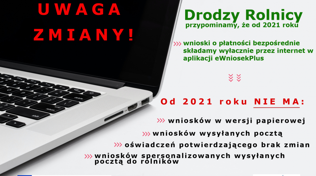Jak informuje Agencja Restrukturyzacji i Modernizacji Rolnictwa od 2021 r. nastąpiły bardzo ważne zmiany w zasadach składania wniosków o płatności obszarowe dla rolników. Od bieżącego roku rolnicy nie złożą już oświadczeń o braku zmian we wnioskach. Wypełnienie wniosków o płatności bezpośrednie będzie jedynie dostępne za pomocą aplikacji eWniosekPlus, a więc drogą elektroniczną. Ponadto, nie są już dostarczane drogą pocztową do rolników spersonalizowane wnioski, a co miało miejsce jeszcze w latach poprzednich.