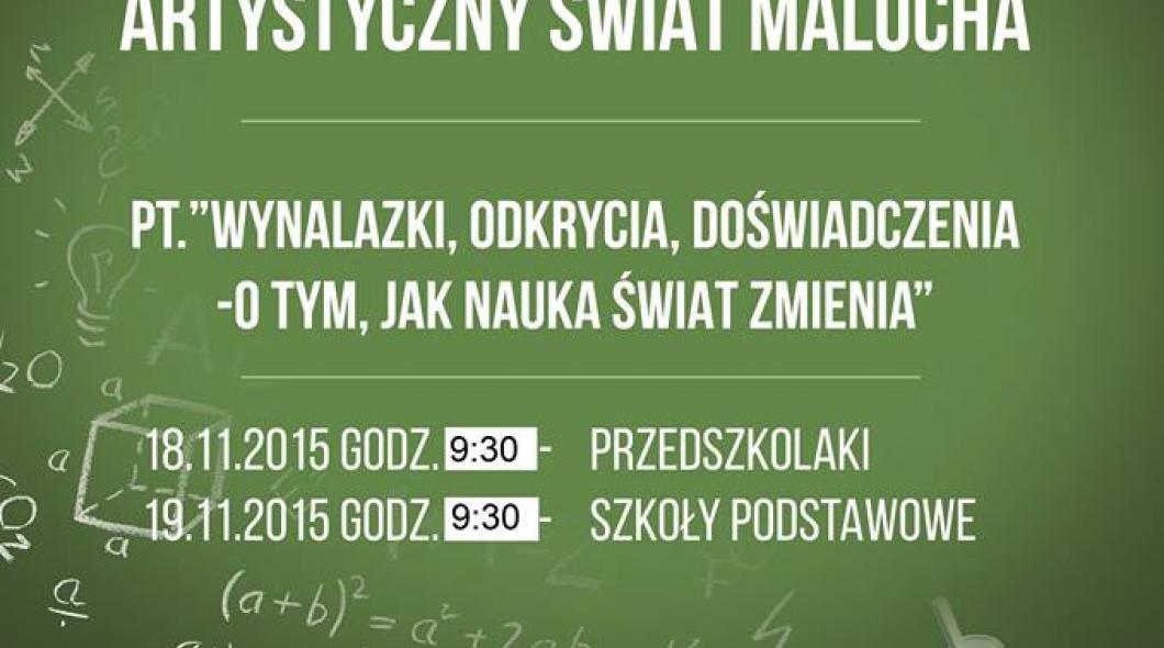 W dniach 18 i 19 listopada 2015 roku sala widowiskowa Obornickiego Ośrodka Kultury oddana zostanie we władanie przedszkolakom i uczniom szkół podstawowych z okazji kolejnej edycji Artystycznego Świata Malucha. W tym roku dzieci prezentują się pod hasłem "Wynalazki, odkrycia, doświadczenia - o tym, jak nauka świat zmienia".