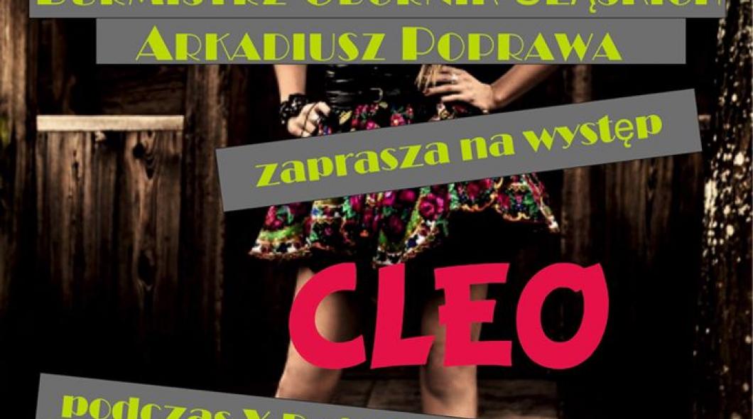Już dzisiaj zapraszamy na Dni Obornik Śląskich, które odbędą się w dniach 20-21 maja 2016 roku. Gwiazdą piątkowego dnia będzie Cleo wraz z tancerkami.