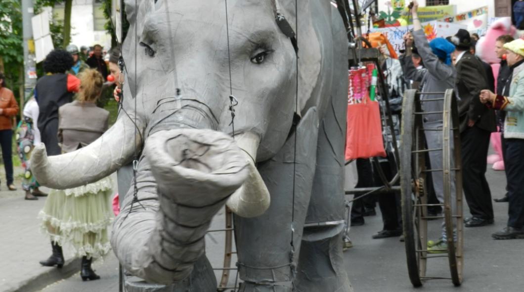 Miasto w tym czasie przygotowywało się już do najbardziej barwnego elementu tegorocznych obchodów Święta Miasta. Przy dworcu kolejowym zebrali się artyści Teatru Kliniki Lalek, by animacjami przy pomocy słonia- symbolu szczęścia zachęcać uczestników wydarzeń do wspólnej parady.