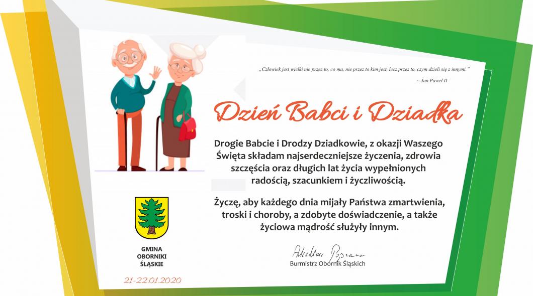 Drogie Babcie i Drodzy Dziadkowie, z okazji Waszego Święta składamy najserdeczniejsze życzenia, zdrowia szczęścia oraz długich lat życia wypełnionych radością, szacunkiem i życzliwością. Życzymy, aby każdego dnia mijały Państwa zmartwienia, troski i choroby, a zdobyte doświadczenie, a także życiowa mądrość służyły innym.