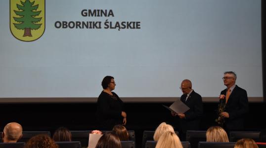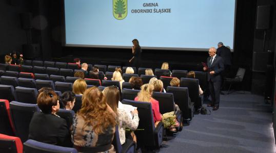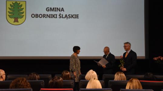 W przeddzień Dnia Edukacji Narodowej, 13.10.2021 r., w sali widowiskowej kina Astra odbyło się uroczystsze spotkanie nauczycieli oraz dyrektorów szkół, przedszkoli i żłobka. Wiceburmistrz Obornik Śląskich Henryk Cymerman w imieniu burmistrza Arkadiusza Poprawy złożył wszystkim pracownikom oświaty życzenia powodzenia w życiu zawodowym i prywatnym, a najlepszym nauczycielom ze szkół i przedszkoli prowadzonych przez Gminę Oborniki Śląskie oraz opiekunce z Miejskiego Żłobka Integracyjnego wręczył Nagrody Burmistrza Obornik Śląskich. Nauczyciele, którzy w sierpniu przystąpili do egzaminu na nauczyciela mianowanego złożyli w obecności zaproszonych gości uroczyste ślubowanie rozpoczynając tym samym kolejny etap swojej kariery zawodowej. Gratulując wyróżnionym sukcesów i dziękując im za zaangażowanie w trudną pracę wychowawcy i nauczyciela, Henryk Cymerman mówił o wyzwaniach stojących przed pracownikami oświaty w obecnych czasach. Podkreślił, że wpływ pracowników oświaty na swoich wychowanków zaczyna się już w żłobku, choć formalnie żłobki nie są częścią polskiego systemu oświatowego, a zgodnie z aforyzmem autorstwa amerykańskiego historyka Henry’ego B. Adamsa „Nauczyciel ociera się o wieczność. Nigdy nie może stwierdzić, gdzie kończy się jego wpływ”.