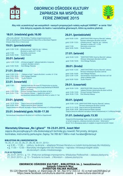 Ferie w Obornickim Ośrodku Kultury | Oficjalny serwis Gminy Oborniki Śląskie