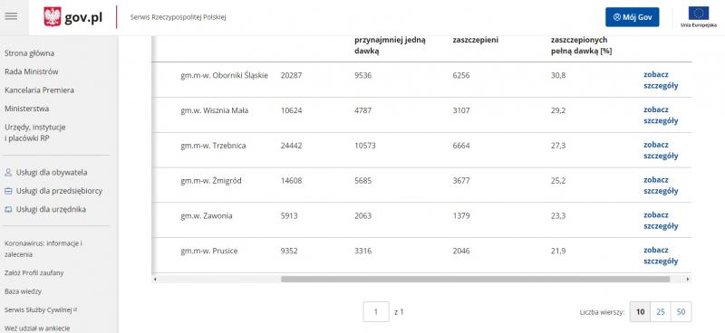 Według oficjalnych danych nasza gmina znajduje się aktualnie na pierwszym miejscu w ilości zaszczepionych mieszkańców przeciw COVID- 19. Blisko 31% pacjentów przyjęło pełną dawkę szczepionki. Zachęcamy do skorzystania z dodatkowego terminu szczepień, który został wyznaczony na najbliższą niedzielę 20 czerwca w Ośrodku Sportu i Rekreacji w Obornikach Śląskich.