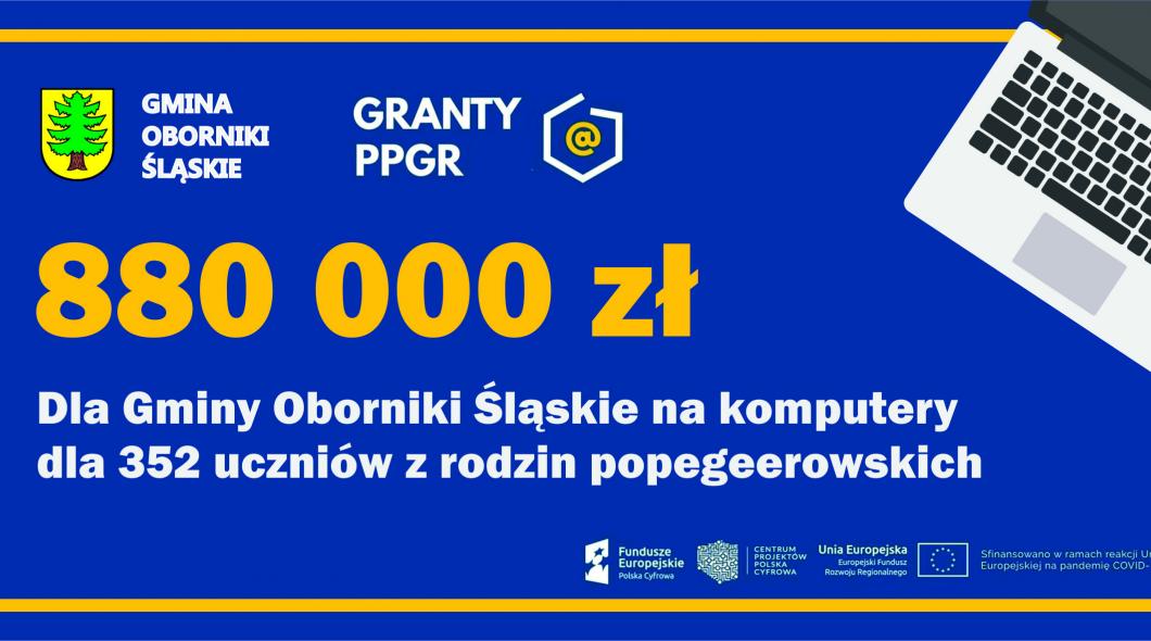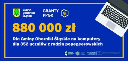 Gmina Oborniki Śląskie pozyskała 880 000,00 zł na zakup sprzętu komputerowego dla uczniów w ramach konkursu „Granty PPGR - wsparcie dzieci i wnuków byłych pracowników PGR w rozwoju cyfrowym”.