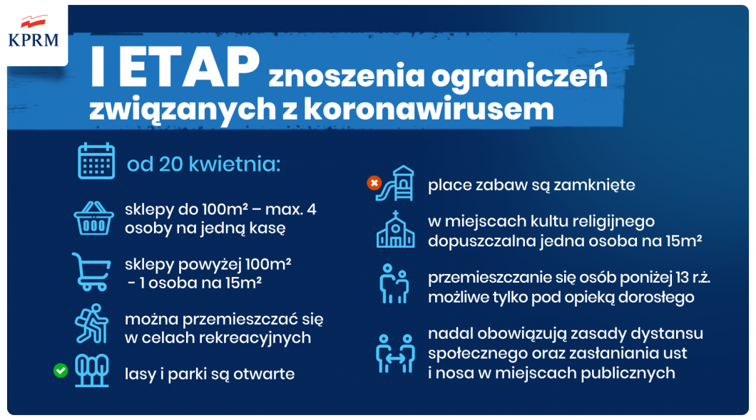 I etap znoszenia ograniczeń związanych z koronawirusem