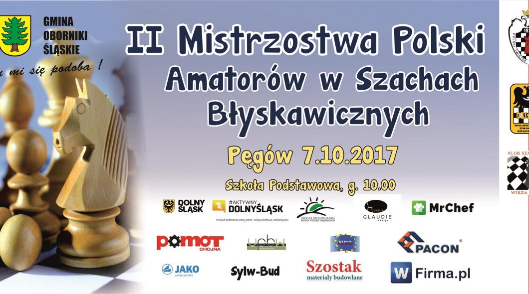 W najbliższą sobotę 7 października 2017r w sali pęgowskiej Szkoły Podstawowej odbędą się II Mistrzostwa Polski Amatorów w Szachach Błyskawicznych! Zapisy od godziny 8.30, natomiast zmagania rozpoczną się od godziny 10.00. Zapraszamy do kibicowania!