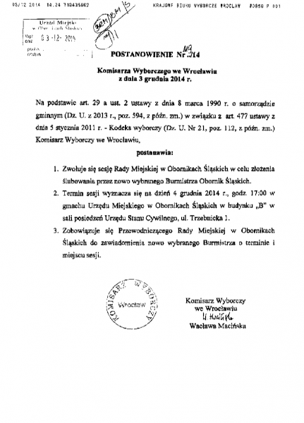 Postanowienie Komisarza Wyborczego we Wrocławiu ...