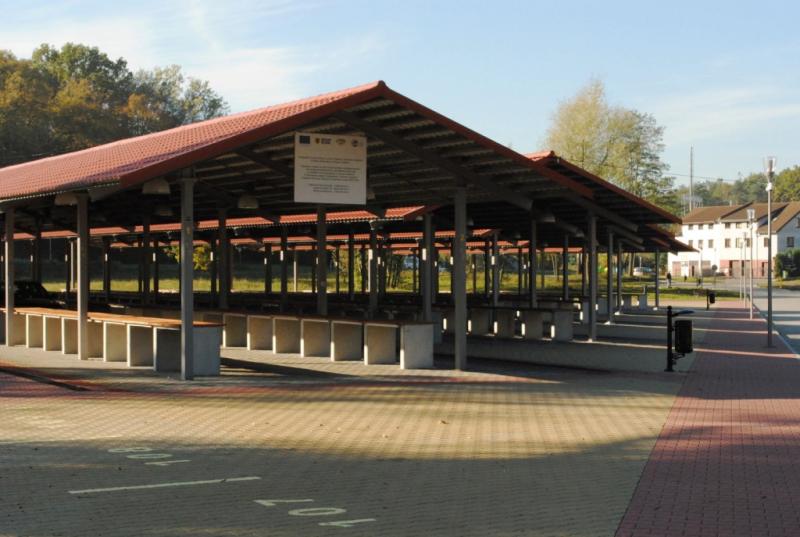 Budowa targowiska stałego "Mój Rynek" w Obornikach Śląskich na budowę którego Gmina Oborniki Śląskie otrzymała jeden milion złotych dotacji z Programu Rozwoju Obszarów Wiejskich na lata 2007-2013.
