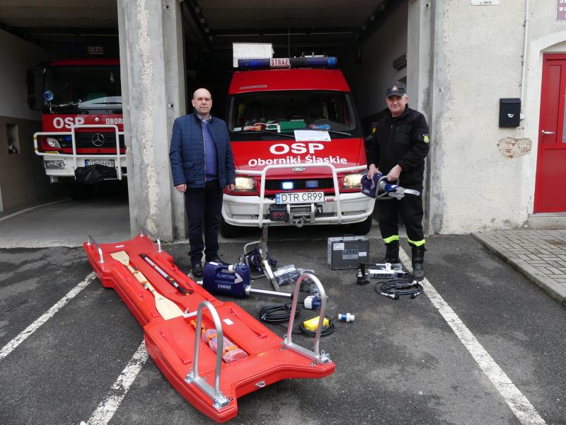 - Ochotnicza Straż Pożarna w Obornikach Śląskich – sanie lodowe ze składanymi poręczami wraz z zestawem składającym się z wioseł lodowych składanych, bosaka teleskopowego, rzutki ratowniczej, kolców lodowych z gwizdkiem, pasów asekuracyjnych; zestaw hydrauliczny elektryczny ( w tym: rozpierak ramieniowy, nożyce, rozpierak kolumnowy); zestaw do wyważania drzwi i obcinania pedałów