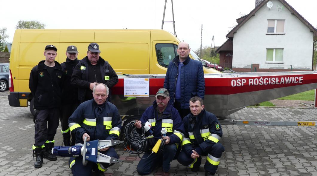 - Ochotnicza Straż Pożarna w Rościsławicach – łódź płaskodenna aluminiowa wraz z przyczepą samochodową do transportu; rozpieracz ramieniowy SP300E2