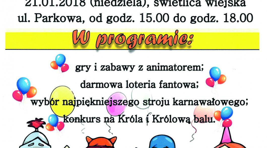 Sołtys wraz z Radą Sołecką Wilczyna zapraszają na Karawałowy Bal Przebierańców. Impreza dla dzieci rozpocznie się 21 stycznia o godzinie 15.00 w świetlicy wiejskiej w Wilczynie.