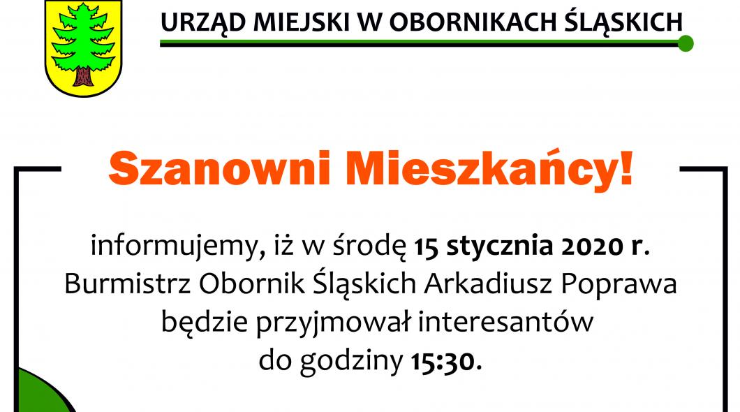 Komunikat dotyczący przyjmowania interesantów przez Burmistrza | Oficjalny serwis Gminy Oborniki Śląskie