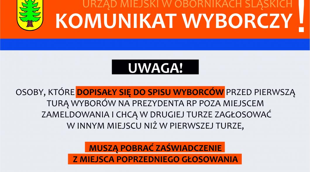 Komunikat wyborczy! | Oficjalny serwis Gminy Oborniki Śląskie