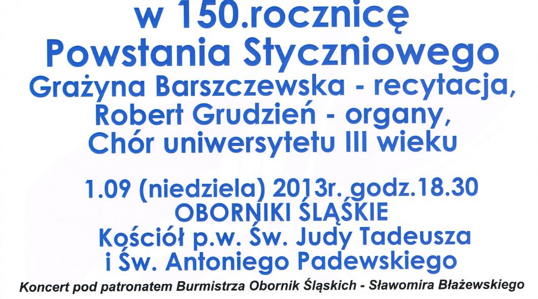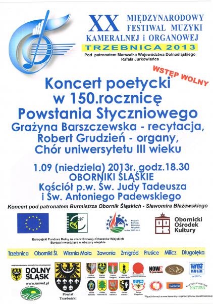 W najbliższą niedzielę zapraszamy do Kościoła p.w. Św. Judyty Tadeusza i Św. Antoniego Padewskiego na Koncert Poetycki z okazji 150. rocznicy Powstania Styczniowego w ramach XX Międzynarodowego Festiwalu Muzyki Kameralnej i Organowej.