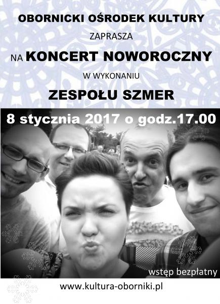 W niedzielę 8 stycznia 2016 roku o godzinie 17.00 zapraszamy do Obornickiego Ośrodka Kultury na noworoczny koncert zespołu Szmer.