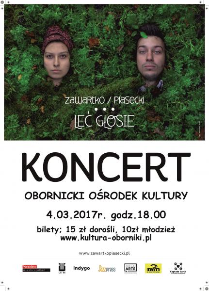 W Obornickim Ośrodku Kultury dnia 4 marca o godzinie 18.00 odbędzie się koncert pn. "Leć głosie" w wykonaniu Magdaleny Zawartko oraz Grzegorza Piaseckiego. Bilety do nabycia w Obornickim Ośrodku Kultury w cenach dorośli: 15 zł, młodzież  10 zł. Więcej informacji na stronie www.kultura-oborniki.pl