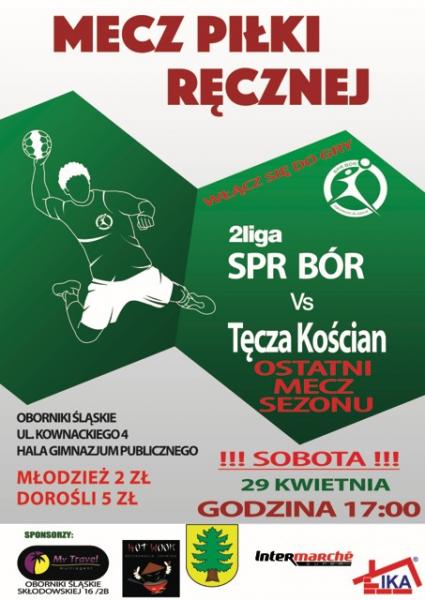 Już w najbliższą sobotę 29 kwietnia o godzinie 17.00 na parkiecie obornickiego gimnazujm odbędzie się ostatni mecz sezonu w piłce ręcznej mężczyzn. Podczas potyczki nasi szczypiorniści podejmą przed swoją publicznością drużynę z Kościana. Zapraszamy do kibicowania!