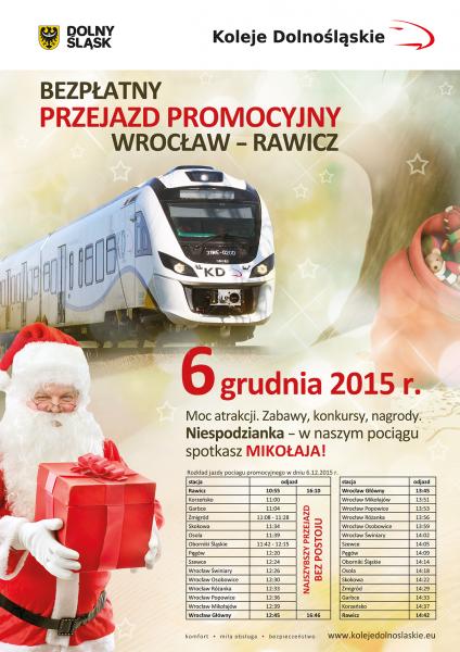 Zapraszamy na przejażdżkę Specjalnym Mikołajkowym Pociągiem Kolei Dolnośląskich relacji Wrocław – Rawicz!