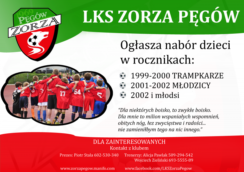Nabór do LKS ZORZA PĘGÓW | Oficjalny serwis Gminy Oborniki Śląskie