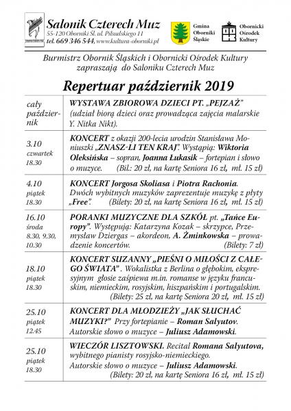 Najnowszy repertuar Saloniku Czterech Muz. | Oficjalny serwis Gminy Oborniki Śląskie