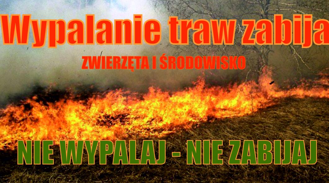 Wypalanie traw zabija - od lat alarmują strażacy, ekolodzy, naukowcy, a mimo to, wiosną i jesienią każdego roku słyszymy o licznych pożarach łąk, pastwisk, nieużytków i trzcinowisk. Osoby wypalające trawy nie zdają sobie sprawy, że może to doprowadzić do gwałtownego pożaru, który przenosi się na lasy, zabudowania mieszkalne i gospodarcze.Wiosenne wypalanie traw często związane jest z chęcią usunięcia niezebranego, ostatniego odrostu trawy. W świadomości niektórych ludzi zachował się bowiem mit, że wypalanie traw i pozostałości roślinnych poprawi żyzność gleby, zniszczy chwasty oraz zwiększy kolejny plon siana. Nic bardziej błędnego... Wypalenie wierzchniej, najżyźniejszej próchniczej warstwy gleby, pociąga za sobą obniżenie jej wartości użytkowej nawet na kilka lat. Zahamowane zostają naturalne procesy rozkładu pozostałości roślinnych, dzięki którym tworzy się urodzajna warstwa gleby. Wysoka temperatura niszczy roślinność, powoduje degradację gleby i stanowi poważne zagrożenie dla zwierząt. Wypalanie łąk, trzcinowisk i zakrzaczeń powoduje śmierć organizmów, żyjących w wierzchnich warstwach gleby, o istnieniu których większość z nas nawet nie wie, a których obecność wpływa na właściwą kondycję gleby. Giną małe zwierzęta, takie jak dżdżownice, które niezwykle efektywnie poprawiają strukturę i właściwości fizyczne gleb. Wymierają całe kolonie mrówek, które jako zwierzęta drapieżne regulują populacje szkodliwych owadów. Giną także biedronki, będące sprzymierzeńcem człowieka w walce z mszycami. Dym uniemożliwia trzmielom i pszczołom zapylanie kwiatów, co w konsekwencji obniża plonowanie roślin. Pożary traw oznaczają także śmierć wielu pożytecznych zwierząt kręgowych, takich jak płazy i gady oraz małe ssaki (krety, ryjówki, jeże, młode zające, nornice i inne drobne gryzonie). Zniszczeniu ulegają także miejsca lęgowe ptaków, a pożary stanowią szczególnie poważne zagrożenie dla przedstawicieli gatunków gnieżdżących się na ziemi lub w krzakach. Ofiarami stają się także większe zwierzęta leśne, takie jak sarny, jelenie czy dziki, a nawet zwierzęta domowe. Wypalanie traw, poza tym, że jest to niechlubna praktyka, jest również niedozwolone. W ustawie z 16 kwietnia 2004 r. o ochronie przyrody wprowadzono zakaz wypalania łąk, pastwisk, nieużytków, rowów, pasów przydrożnych, szlaków kolejowych oraz trzcinowisk i szuwarów. Za łamanie tego zakazu grożą sankcje karne w postaci kary aresztu lub kary grzywny. Zakaz wypalania traw jest również jednym z wymogów dobrej kultury rolnej, których przestrzeganie jest wymagane między innymi w ramach systemu dopłat bezpośrednich i stanowi jedną z tzw. zasad wzajemnej zgodności – katalogu wymogów i ograniczeń, jakim podlegają rolnicy korzystający z tych dopłat.