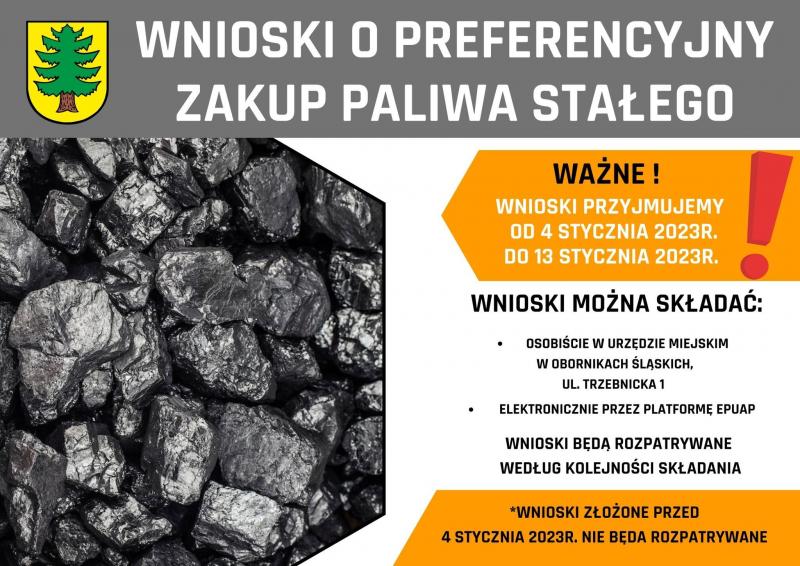 Nowe wnioski o zakup preferencyjny paliwa stałego przyjmowane będą od 4 stycznia 2023 roku.