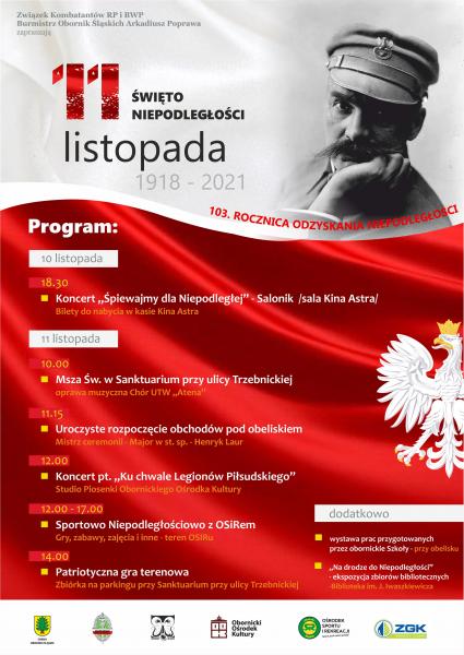 Przed nami Święto Niepodległości. Z tej okazji odbędą się uroczyste obchody 103. rocznicy Odzyskania Niepodległości przez Polskę. Plan uroczystości: