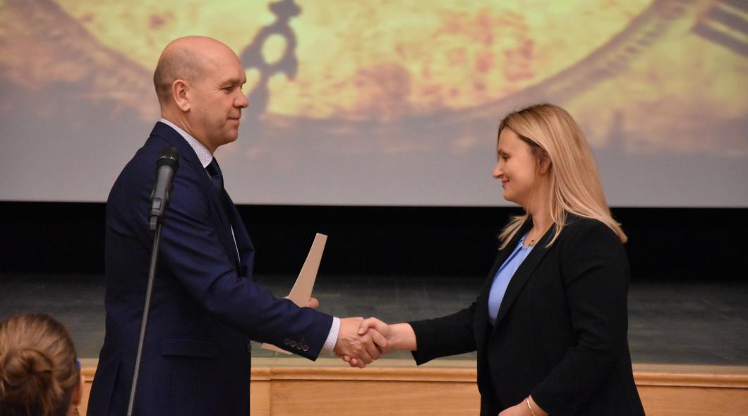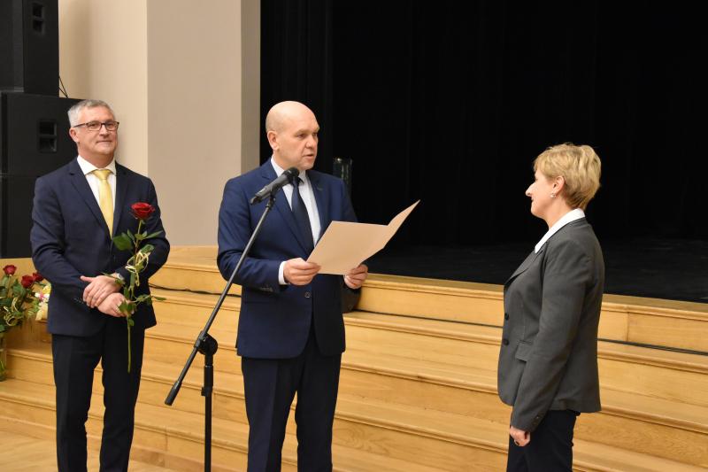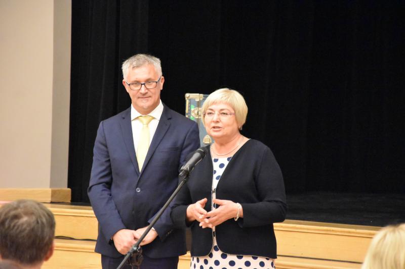W środę, 16.10.2019 r.  w Obornickim Ośrodku Kultury miały miejsce uroczyste obchody Dnia Edukacji Narodowej. W trakcie uroczystości wyróżniający się nauczyciele i dyrektorzy gminnych placówek edukacyjnych  otrzymali z rąk Arkadiusza Poprawy Nagrody Burmistrza Obornik Śląskich. Nagrodę Specjalna otrzymała pani Katarzyna Królik, dyrektor Miejskiego Integracyjnego Żłobka „Pod Grzybkiem”. Na początku tego miesiąca nasz żłobek zwyciężył w rywalizacji z podobnymi placówkami z całej Polski i otrzymał prestiżowy tytuł „Żłobka Roku 2019”.  Nauczyciele, którzy w tym roku uzyskali stopień nauczyciela mianowanego, złożyli uroczyste ślubowanie. Burmistrz oraz zaproszeni przedstawiciele organizacji współpracujących z oświatą przekazali wszystkim nauczycielom, pracownikom obsługi i administracji placówek oświatowych, emerytowanym pracownikom oświaty i pracownikom Urzędu Miasta odpowiedzialnym za współpracę ze szkołami okolicznościowe życzenia. Uroczystość uświetnił swoim występem zespół Iskra i Iskierka z Urazu.