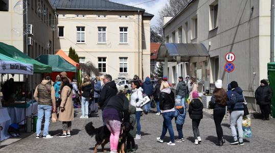 W sobotę 9 kwietnia na parkingu przy Urzędzie Miejskim w Obornikach  Śląskich odbył się po raz pierwszy Obornicki Jarmark Wielkanocny. Na tegorocznym jarmarku mimo iście kwietniowej pogody (słońce, deszcz, grad i wiatr) pojawiło się mnóstwo wystawców. Gościliśmy połączone siły obornickich szkół, które pomagały małej mieszkance naszego miasta - Indze, a na ich stoisku było bardzo dużo ciast oraz ozdób świątecznych. Koło Gospodyń Wiejskich z Lubnowa pomagało choremu Kamilkowi w walce o zdrowie. Na Wielkanocnym targu obecne były również stoiska innych Kół Gospodyń Wiejskich z przepysznym świątecznym jedzeniem, kiełbasami, bigosem, ciastami. Na jarmarku znajdowały się stoiska naszych nowych mieszkańców z Ukrainy, którzy przygotowali palmy wielkanocne, ciasta, pierogi i inne dekoracje na  świąteczny stół.  W trakcie wydarzenia odbył się pokaz kulinarny, który przedstawiła zwyciężczyni II edycji  MasterChef Junior Julka Cymbaluk. Zgromadzonym pokazała jak przygotować świąteczną pasche z sera, jajek i bakalii oraz jak naturalnie zabawiać jajka.  Wydarzenie obfitowało w wiele atrakcji dla najmłodszych. Obornicki Ośrodek Kultury i  Gmina Oborniki Śląskie zorganizowali warsztaty dla dzieci. Milusińscy ozdabiali drewniane jajka, kurczaki oraz motylki. Dodatkowo, zgromadzone pod sceną dzieci rozśmieszały Klauny, wprawne oko mogło dostrzec wśród tłumu duże bańki mydlane, zabawy z dużą kolorową chustą klanzy oraz tańce i śpiewy.  Organizatorzy zadbali również o kondycję fizyczną mieszkańców, którzy ruszyli w miasto uczestnicząc w grze terenowej „Znajdź Zająca”. Zadanie do wykonania było bardzo prostę. Polegało na odnalezieniu jak największej liczby ukrytych wcześniej jajek niespodzianek na terenie miasta. Dla zwycięskiej drużyny nagrodą był zestaw gadżetów i słodyczy.