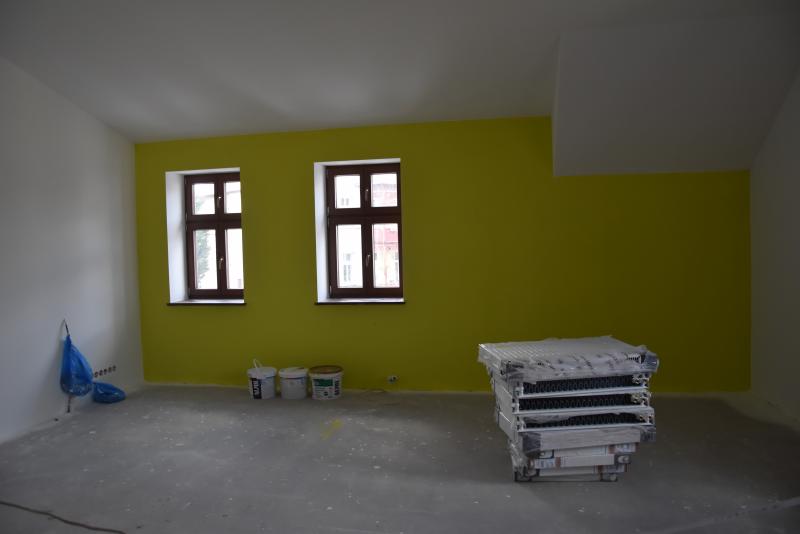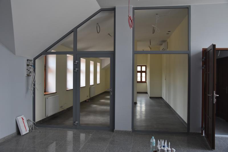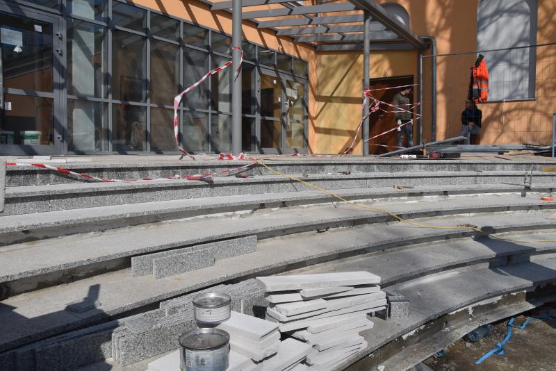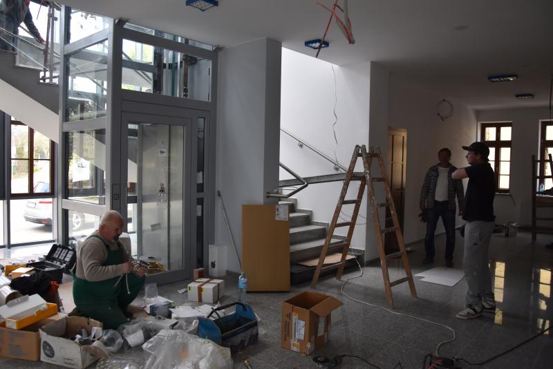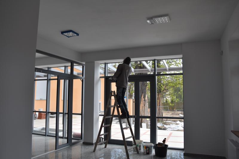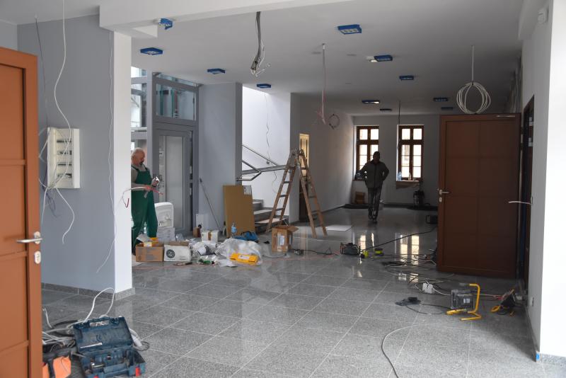 Modernizacja kina jest już na bardzo zaawansowanym etapie. W budynku trwają już prace wykończeniowe - prace malarskie, montaż wyposażenia toalet, opraw oświetleniowych i okładzin akustycznych na sali kinowej. Podłoga sali kinowej wyłożona została wykładziną dywanową. Renowacji podawany jest mural w hallu kina, dzięki któremu nasze kino zyska niepowtarzalny wygląd. Zamontowany został już ekran do wyświetlania filmów, a w dniu jutrzejszym zakończy się montaż foteli kinowych. W najbliższy poniedziałek dostarczony zostanie projektor. Wokół budynku trwają prace związane z zagospodarowaniem terenu. Po pracach związanych z montażem sieci sanitarnych i elektrycznych, wykonywana jest podbudowa. Czekamy na zamówione materiały tj. kostkę granitową, płyty i krawężniki granitowe. Harmonogram prac i pozostałych dostaw może zostać jednak zakłócony w związku sytuacją epidemiologiczną.