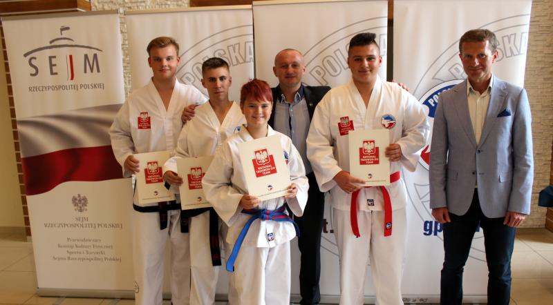 Jakub Rutkowski (junior), Mateusz Kowalczyk (senior), Tobiasz Dusiński (kadet), Piotr Gąsior (trener), Alan (kolega z Legnicy) oraz pan Ireneusz Raś - szef sportu w Sejmie Rzeczypospolitej Polskiej.