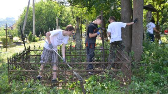 Husiatyn to stare miasto nad Zbruczem z wieloma zabytkami. Naszych rodaków jest tam niewielu. Większość po zakończeniu wojny osiedliła się w Obornikach Śląskich. W czwartek 4 lipca wszyscy zameldowali się w hotelu „Symfonia” -jedynym w tej miejscowości ale warty polecenia. Od piątku 5 lipca rozpoczęły się prace na cmentarzu. Polegały one głównie na karczowaniu terenu, koszeniu trawy, czyszczeniu pomników, renowacji tablic nagrobnych, stawianiu przewróconych krzyży i nagrobków. Nie było łatwo. Ciągle doskwierał nam upał, czasem brakowało sił.