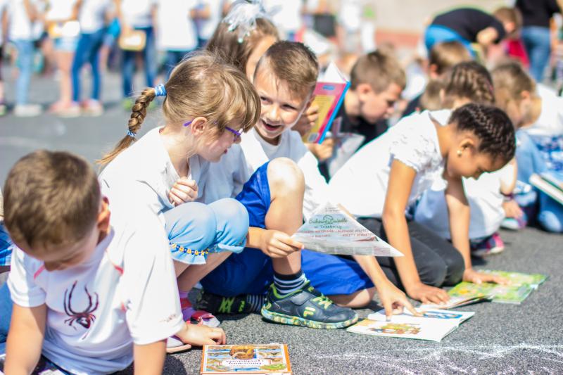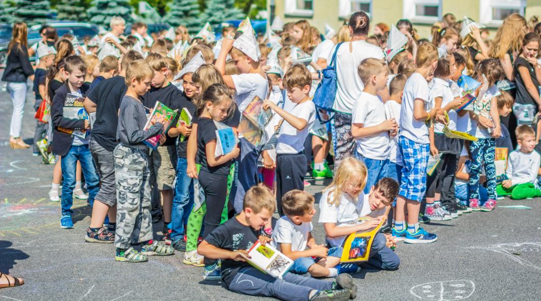 10 czerwca Szkoła Podstawowa Nr 2 w Obornikach Śląskich wzięła udział w ogólnopolskiej akcji masowego czytania pod hasłem „Jak nie czytam, jak czytam”. Przedsięwzięcie zainicjowane przez redakcję miesięcznika „Biblioteka w Szkole”, mające na celu promocję czytelnictwa wśród dzieci i młodzieży, skłoniło do oryginalnych pomysłów wiele placówek w Polsce, w tym również i nas. Przed godziną 10.00 wszyscy uczniowie z książkami w ręku ubrani w białe lub czarne koszulki pojawili się wraz z nauczycielami na placu przed szkołą. Obowiązujące tego dnia kolory nawiązywały do bieli kartek i czerni drukowanych liter. Był czas na czytanie pod chmurką oraz na rozmowy, pochwalenie się przyniesionymi prosto z domowej biblioteczki egzemplarzami. Następnie wszyscy zgromadzeni uformowali kształt otwartej książki, a wówczas przed szkołę podjechał wóz strażacki. To z jego koszyka wyniesionego kilkanaście metrów nad ziemię zostały zrobione zdjęcia uwieczniające akcję. Nad nami latały również dwa drony z kamerami, filmując niecodzienne wydarzenie. Nasz fotoreportaż oraz sprawozdanie z przebiegu akcji wezmą udział w ogólnopolskim konkursie, gdzie do wygrania są ciekawe nagrody książkowe oraz prenumeraty czasopism dla szkoły. Spontaniczna i oryginalna akcja czytelnicza dostarczyła wszystkim niezapomnianych wrażeń. Żywimy nadzieję, że wielu uczniów sięgnie podczas wakacji po ciekawą lekturę, a czytanie stanie się po prostu modne. Serdecznie dziękujemy wszystkim, którzy pomogli w zorganizowaniu akcji.