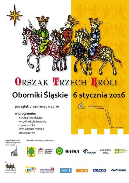 Mieszkańców Gminy Oborniki Śląskie zapraszamy na Orszak Trzech Króli, który zostanie zorganizowany 6 stycznia 2015 roku na targowisku "Mój Rynek" w Obornikach Śląskich.