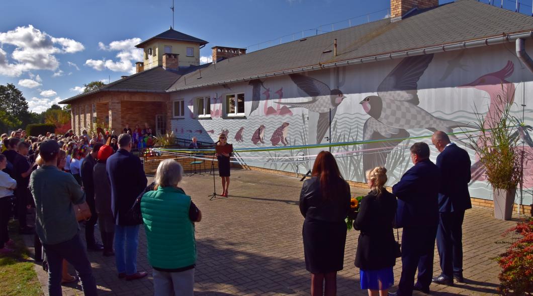 Mural na Szkole Podstawowej im. Unii Europejskiej w Urazie został oficjalnie otwarty. Wtorek 11 października 2022r. jest ważną datą, która wpisze się w historię szkoły w Urazie za sprawą odsłonięcia murala, który nawiązuje do niedaleko płynącej rzeki Odry. Jak podkreśliła autorka murala - dzieło ma wszyskim przypominać o tym jak ważnym elementem ekosystemu jest Odra i żyjące w niej zwierzęta. Uroczystość składała się z dwóch części. Oficjalnej na której powitano przybyłych gości i przecięto wstęgę oraz artystycznej podczas której uczniowie wraz z nauczycielami przypomnieli zgromadzonym jak ważną rolę w naszym życiu odgrywają owoce warzywa i zioła. Całość była przeplatana przepiękną grą pań na harfie i gitarze klasycznej.