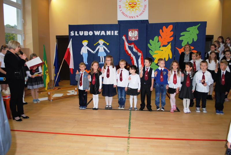 W dniu dzisiejszym w Szkole Podstawowej im. Jana Brzechwy w Osolinie odbyło się pasowanie na pierwszoklasistę. Odświętnie ubrane dzieci z wielkim przejęciem przedstawiły piękny program artystyczny, a następnie z wielką powagą złożyły ślubowanie. Otrzymały dyplomy oraz legitymację szkolną - swój pierwszy szkolny dokument.