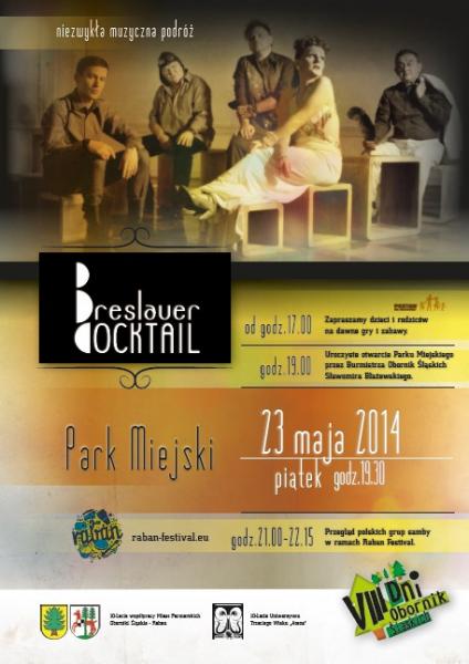 o godzinie 19.00 w piątek 23.05.2014r. zapraszamy na OFICJALNE OTWARCIE PARKU MIEJSKIEGO po rewitalizacji a o godzinie 19.30 na koncert zespołu Breslauer Cocktail i potem przegląd zespołów w ramach RABAN FESTIVAL.