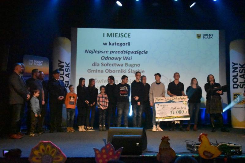3 grudnia 2022r. Burmistrz Obornik Śląskich wraz z mieszkańcami i sympatykami Bagna uczestniczyli w uroczystej gali Finału Konkursu "Piękna Wieś Dolnośląska 2022". Finał odbył się w gminie Bystrzyca Kłodzka, a Najpiękniejszą wsią w 2022 r. jest Międzygórze. Mieszkańcy Bagna na czele z Panią sołtys Katarzyną Jarczewską zdobyli I Miejsce w kategorii "Najlepsze przedsięwzięcie Odnowy Wsi" z projektem "Świetlica wiejska - Nasz drugi dom". Gratulujemy wygranej.