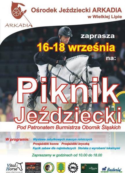 Zapraszamy na Piknik Jeździecki do Wielkiej Lipy, który odbędzie się pod patronatem Burmistrza Obornik Śląskich Arkadiusza Poprawy oraz pod patronatem medialnym Radia Wrocław.