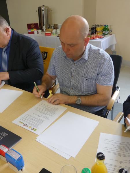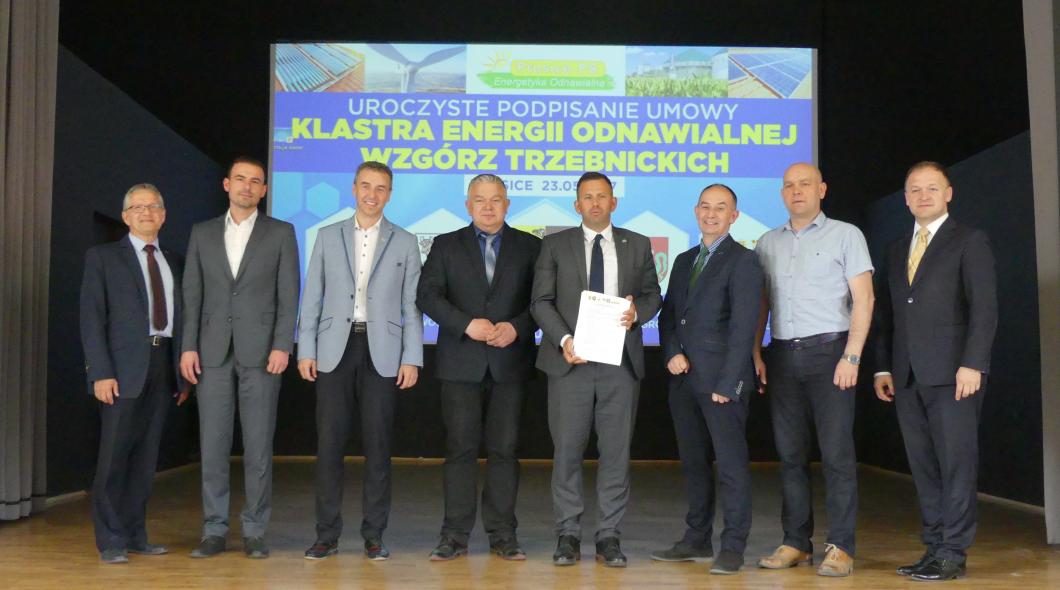 W dniu dzisiejszym w Gminnym Ośrodku Kultury i Sportu w Prusicach Burmistrz Obornik Śląskich Arkadiusz Poprawa uczestniczył w uroczystym podpisaniu umowy Klastra Energii Odnawialnej Wzgórz Trzebnickich. Celem utworzenia klastra w którego skład wchodzi pięć gmin (Oborniki Śląskie, Wołów, Prusice, Źmigród, Wisznia Mała) jest pozyskanie środków zewnętrznych na budowę elektrowni fotowoltaicznej. Pozyskiwanie energii z baterii fotowoltaicznych przyniosłoby duże oszczędności w budżecie gminnym, przyczyniło się również do ochrony czystości powietrza oraz bezpieczeństwa energetycznego.