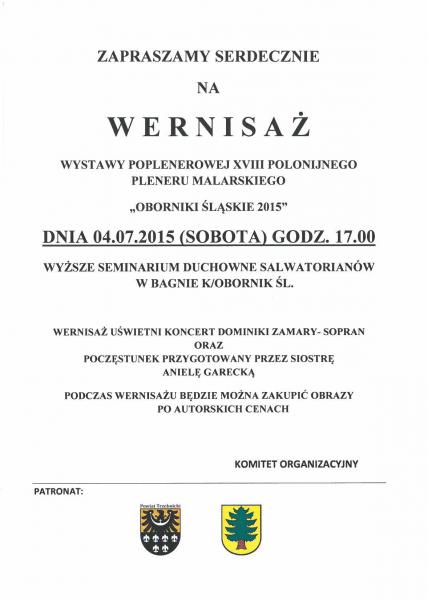 Zapraszamy na wernisaż XVIII polonijnego pleneru malarskiego w Bagnie, który odbędzię się w sobotę 4 lipca 2015 roku o godz. 17.00
