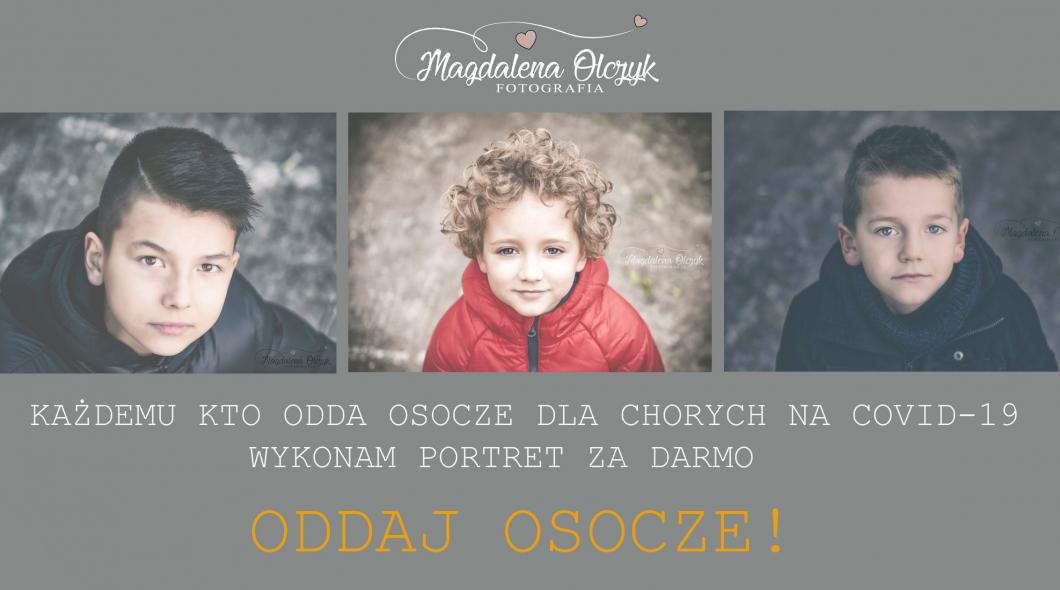 "Portret za osocze" to akcja społeczna, która zachęca do oddania osocza przez "Ozdrowieńców". Każda osoba, która przeszła wirusa COVID-19 i odda osocze w zamian otrzyma za darmo profesjonalną fotografię portretową. Na terenie naszej Gminy zadba o to lokalna mieszkanka - FOTOMAG Magdalena Olczyk. Zachęcamy do podzielenia się tym co najważniejsze!