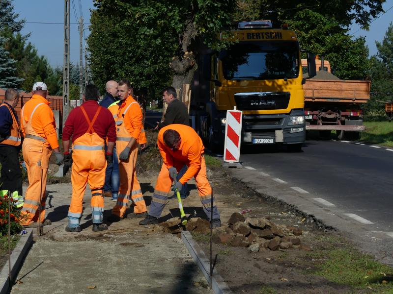 Powstaje kolejny chodnik na terenie naszej Gminy. Burmistrz Obornik Śląskich Arkadiusz Poprawa wraz z Kierownikiem Wydziału Inwestycji i Remontów Andrzejem Małkiewiczem przyglądali się postępowi prac przy budowie chodnika wzdłuż ulicy Brzeskiej w Urazie. W ramach zadania, które jest współfinansowane w 50% przez Województwo Dolnośląskie zostanie położona kostka brukowa na odcinku 1070m, powstaną zatoki autobusowe oraz zostaną utworzone zjazdy do posesji.