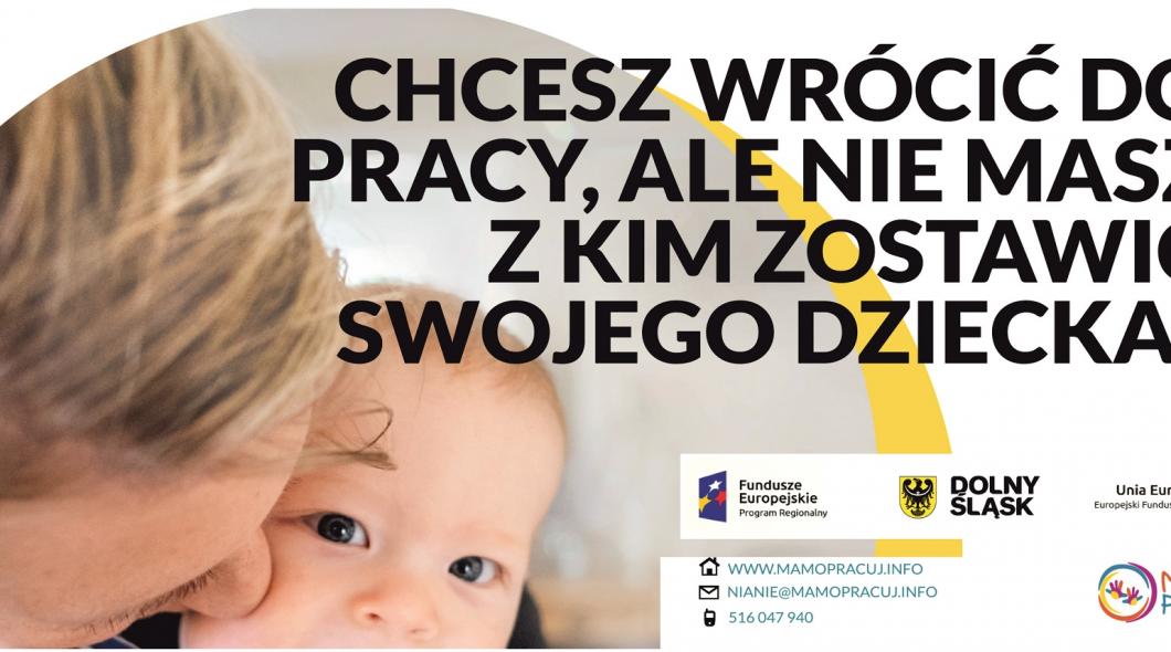 Projekt "Mamo pracuj Dofinansowanie kosztów opieki nad dziećmi do 3 lat" jest współfinansowany przez Unię Europejską ze środków Europejskiego Funduszu Społecznego. Celem projektu jest umożliwienie powrotu do pracy lub jej znalezienie rodzicom, opiekującym się dziećmi do lat 3, poprzez finansowanie kosztów wynagrodzenia niani.