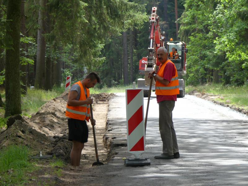 Burmistrz Arkadiusz Poprawa wraz z Kierownikiem Wydziału Inwestycji i Remontów Andrzejem Małkiewiczem, Sołtysem wsi Jary Beatą Trumpiel oraz radnym Tomaszek Gibalskim wizytowali dzisiaj przebieg prac nad przebudową drogi gminnej w miejscowości Jary. Koszt przebudowy blisko kilometrowego odcinka (990 metrów) wyniesie 497 000 zł z czego 50% pochodzi z otrzymanej dotacji z Dolnośląskiego Urzędu Wojewódzkiego w ramach Programu Rozwoju Gminnej i Powiatowej Infrastruktury Drogowej na lata 2016-2019